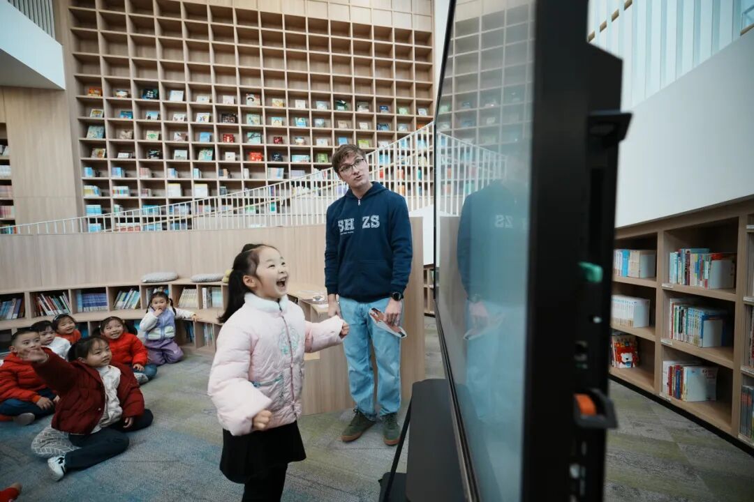在小学图书馆的开放式学习区,小朋友们参与了一节独特的全球视野课程。从驱动性问题出发,将不同国家的文化现象转化为可探究的小型课题,老师启发式引导,鼓励小朋友们独立思考,开放独特的认知视野。