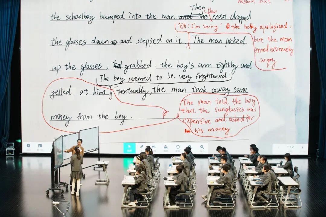 On November 18, the Minhang District Grade 9 English teaching seminar was held at the school’s art center. Teacher Zhou Ziwei’s writing class, A Crime Report, applied a situational cognition and process writing approach, embedding the writing task in an authentic “detective case filing” scenario. District teaching researcher Yilin gave high praise from both conceptual and strategic perspectives.