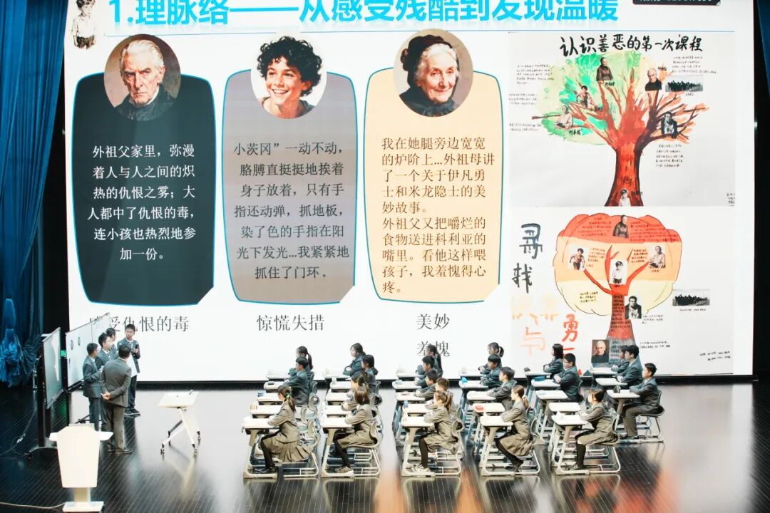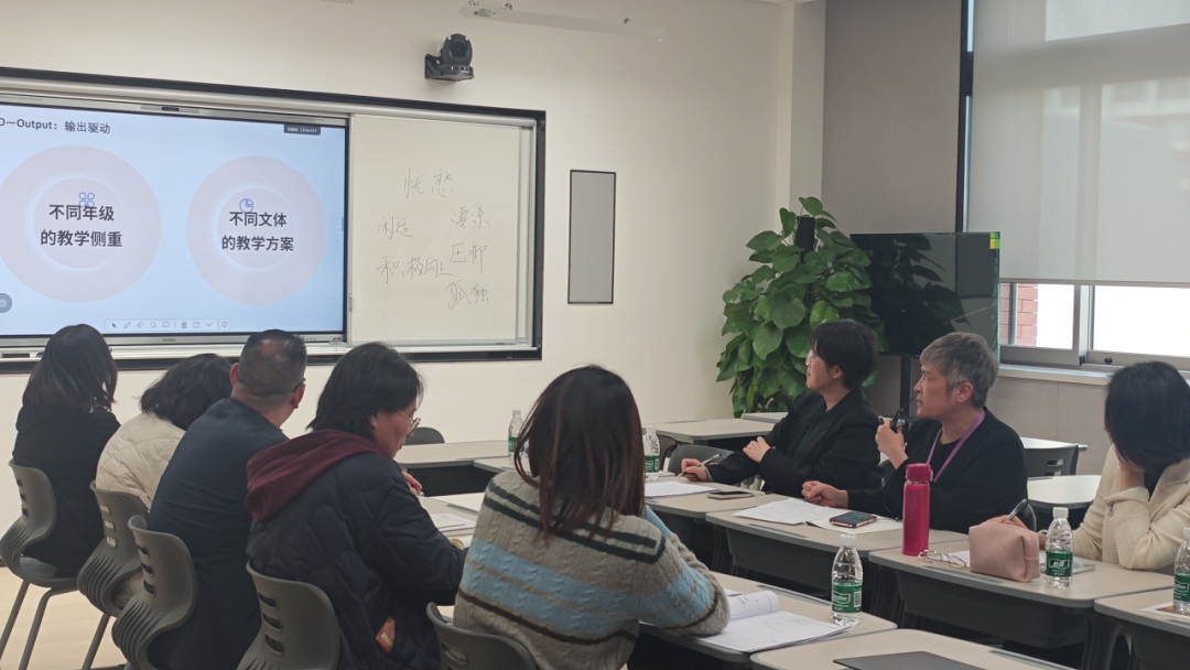On December 4, the Minhang District Chinese teaching seminar was held at the school’s art center. Teacher Hu Shankun’s whole-book reading class on Childhood guided students through “reading, analyzing, and reflecting” via a task chain, serving as a key case study. Teacher Jiang Miao’s sharing on the “three-step task sheet” approach for teaching Red Crag received high recognition from district teaching researcher Bao Qing.