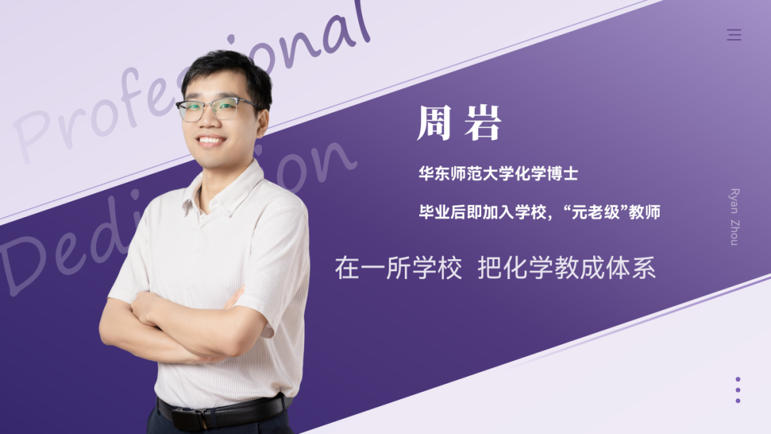 周岩,华东师范大学化学博士,毕业后即加入学校,属于“元老级”教师。多年初三教学经验,让周老师对化学知识结构、考点逻辑与初高衔接有着极为清晰的把握。