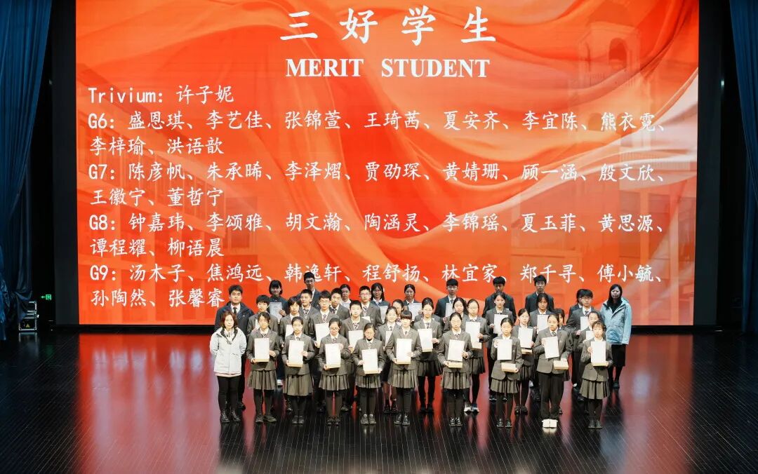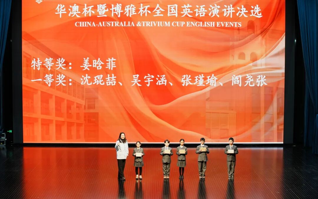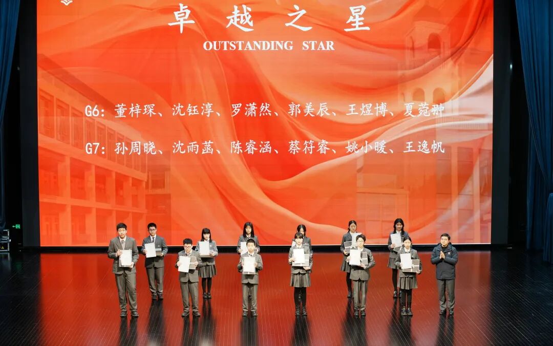 典礼上,学校对上一学期表现突出的学生进行了集中表彰。综合类奖项方面,共有58名小学生、37名初中生及博雅项目学生荣获“三好学生”称号,29名小学生、25名初中生及博雅项目学生获评“卓越之星”。在学科与竞赛领域,学生表现同样亮眼:从Spelling Bee中国区金奖、华澳杯英语演讲特等奖,到澳大利亚数学测评、美国数学测评AIME晋级、英国数学测评超级金奖、加拿大化学测评超级金奖、世界学者杯全球轮奖项等数理与人文类赛事,充分展现了学生在多元发展中的卓越能力。体育方面,全国飞镖锦标赛冠军、软式曲棍球联赛总冠军等荣誉也为校园增添了浓墨重彩的一笔。颁奖环节高潮迭起,现场掌声不断,榜样的力量激励着每一位学子继续前行。