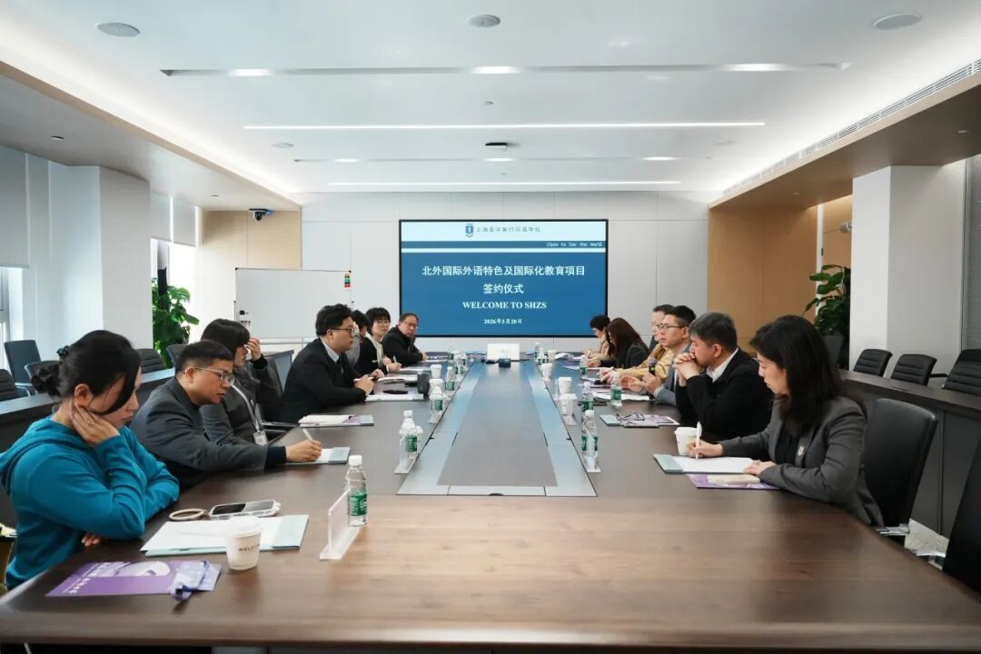 The signing ceremony was attended by SHZS Principal Leo Ge, Vice Principal Wang Ye, BFSU International General Manager Li Guohui, Assistant General Manager Ye Ming, Program Manager Li Feng and other representatives.