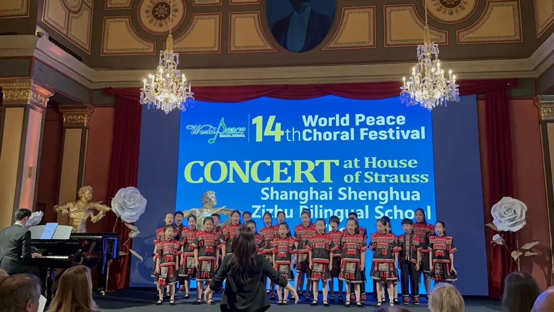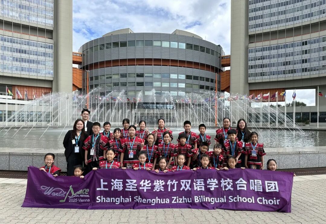 Before the morning mist over the Danube had fully lifted, the vaults of Vienna’s Golden Hall already echoed with celestial sounds from the East. On July 17, the Shanghai Shenghua Zizhu Bilingual School Choir conquered the international judges with the perfect harmony of 26 youthful voices at the 14th World Peace Choral Festival, proudly lifting the silver medal trophy. Through their singing, they left the musical imprint of Shenghua students on the marble floors of the UN Conference Centre, the carved arches of the Strauss Palace, and beneath the crystal chandeliers of the Golden Hall.