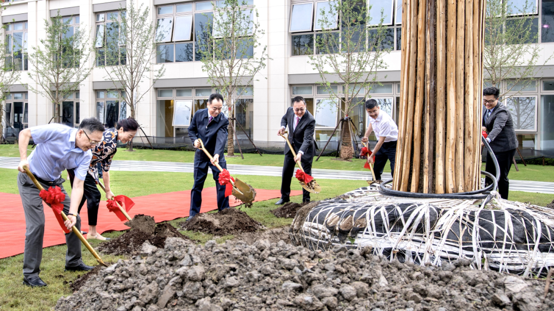 2025年7月18日上午,民办兰香湖基础教育园区迎来学校举办方代表、校方代表和项目参建人员,共同庆祝阶段性成果。紫江集团董事长、圣华紫竹双语学校和高级中学创始人沈雯,紫江集团副董事长郭峰,紫江集团副总裁胡兵,副总裁唐继锋,紫竹高新区集团副总经理陆纬武和圣华紫竹双语学校校长葛顺勇共同为中心广场的银杏树培土,寓意种树育人。