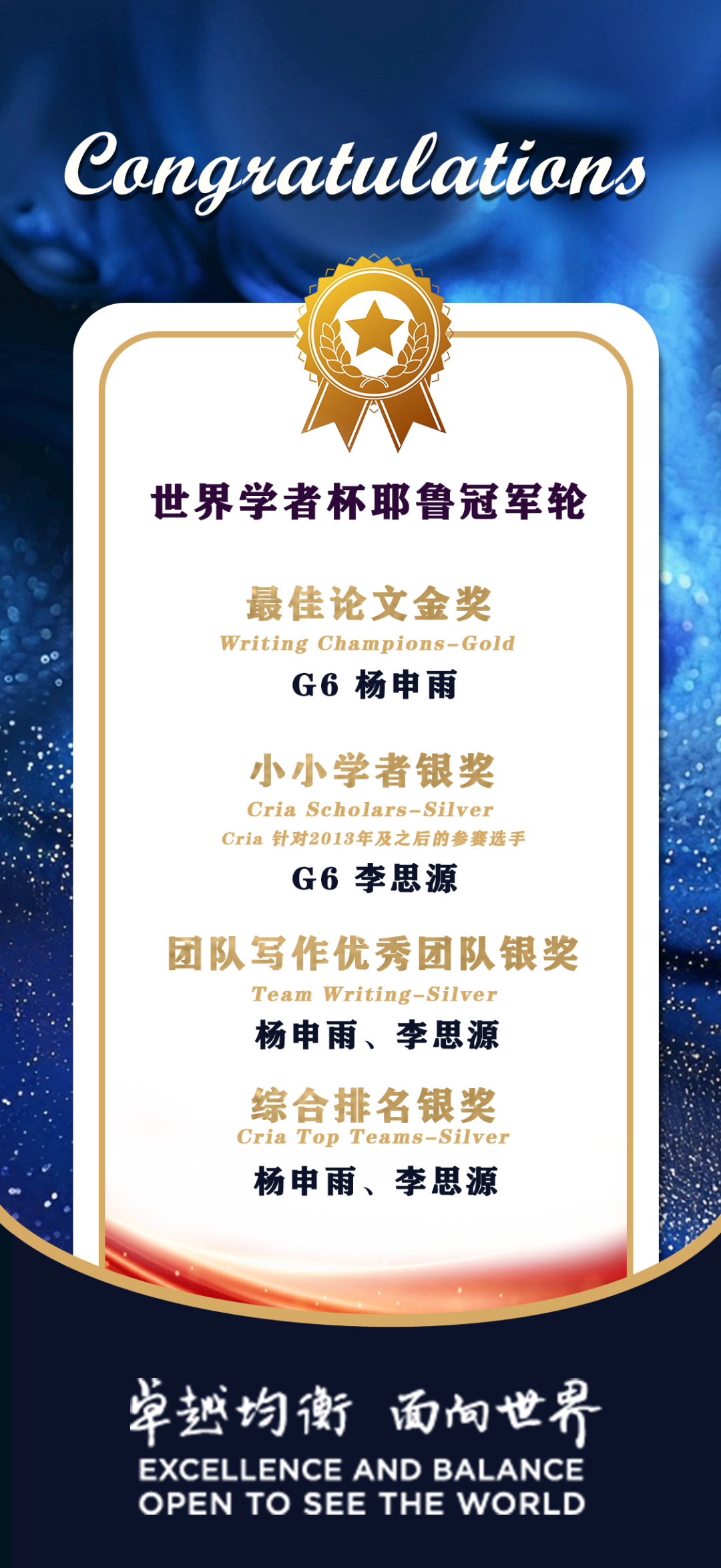 喜讯 | 祝贺我校同学晋级2024 世界学者杯耶鲁冠军轮 Congratulations!